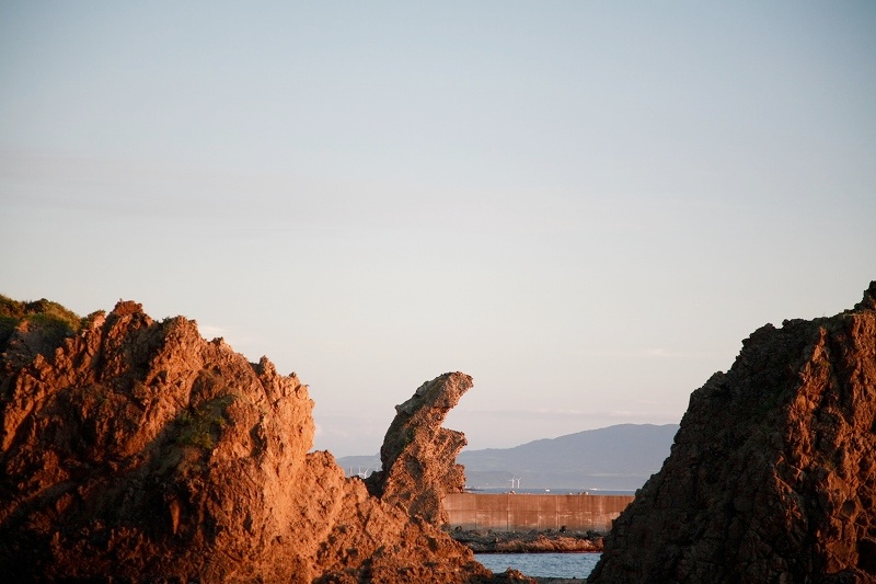 美谷漁港にある獅子岩と呼ばれる奇岩。