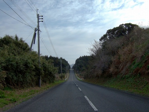 美濃峠を越え、内之浦宇宙空間観測所を過ぎると豪快にまっすぐ内之浦の街に向け下っていく...