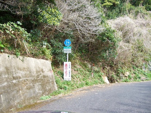 無難な道は県道68号を北上して、国道448号に出るルート。しかし、なんとなく気分で海沿いに内之浦に向かう県道74号へ向かうことにした。通行不能が多い道路だが、とくにカンバンも無かったので突入していった...