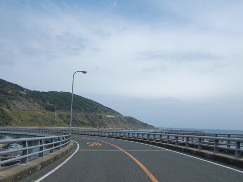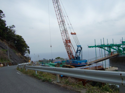 かなり大規模な橋の工事をやっている。これは一昨年来た時から続いている工事だ。この大隅半島東岸の道は太平洋の荒波に直