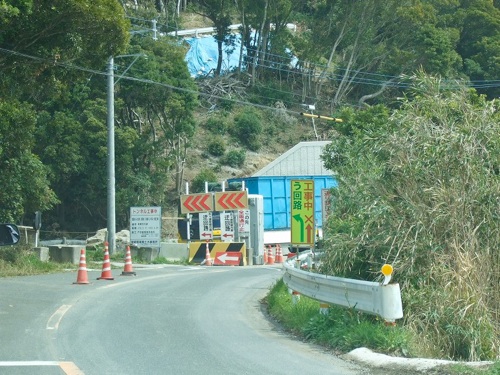 国道448号は宮ノ浦から恋ヶ浦の間の小崎で災害対策工事(トンネル化)を行っている。このリンクを見てもらえばわかるが、この辺は地すべりが起こりやすく、通行止め自体は2006年から続いている。