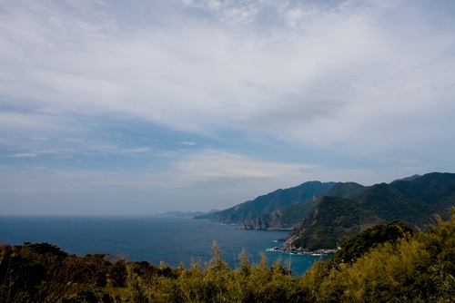 辺塚集落を越えて再び山を登ったところから見た、湊原という半島である。