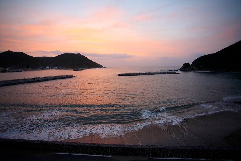 左側、外の浦の方角から太陽は昇ってくるはずだ...