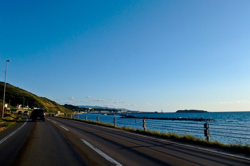 奥尻島のちょうど東側にあたる海岸線を走行中。
