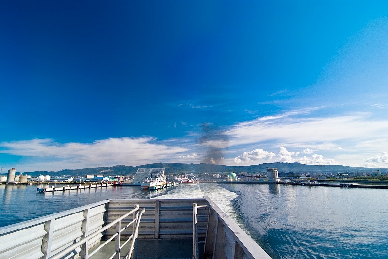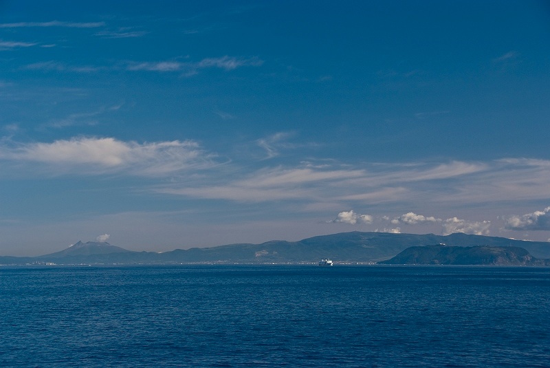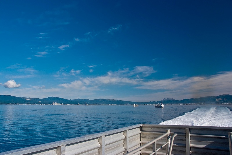 驚くほど穏やかな津軽海峡は、見たことも無い風景が広がる。
