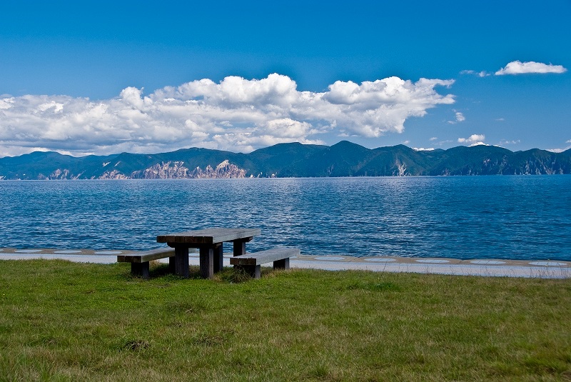 草地が広がるこのベンチに腰掛けて、平館海峡を行きかう船をぼぉーっと見ていた。