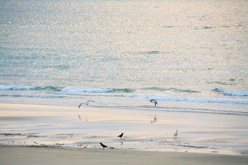 静かな波音と、すこし暖かい風が西から吹いて来た。
