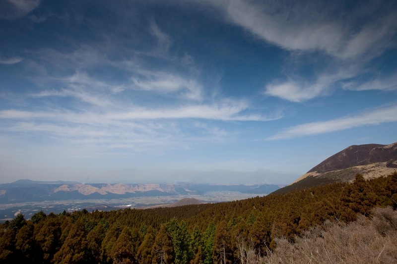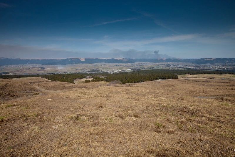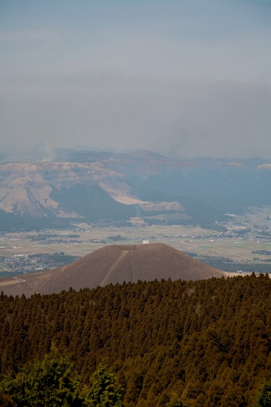 どうも灰の臭いがすると思ったら、この日の阿蘇はいっせいに山焼きの日だった。