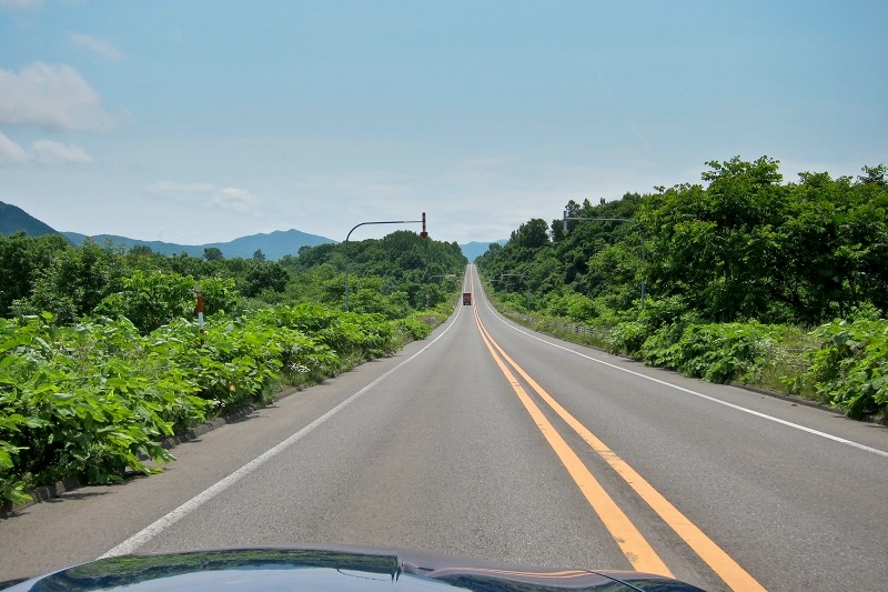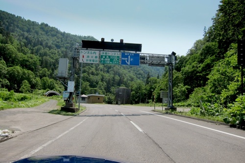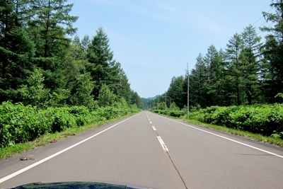 道道101号はひたすら森の中を走る道。樹海の中を走る道なんだけど、北海道の場合道が良すぎて木との距離がありすぎて、ボクの樹海の道のイメージに全然合わない。