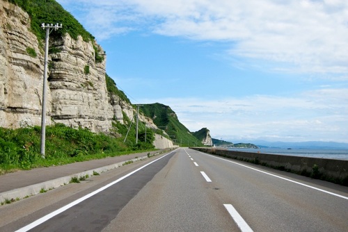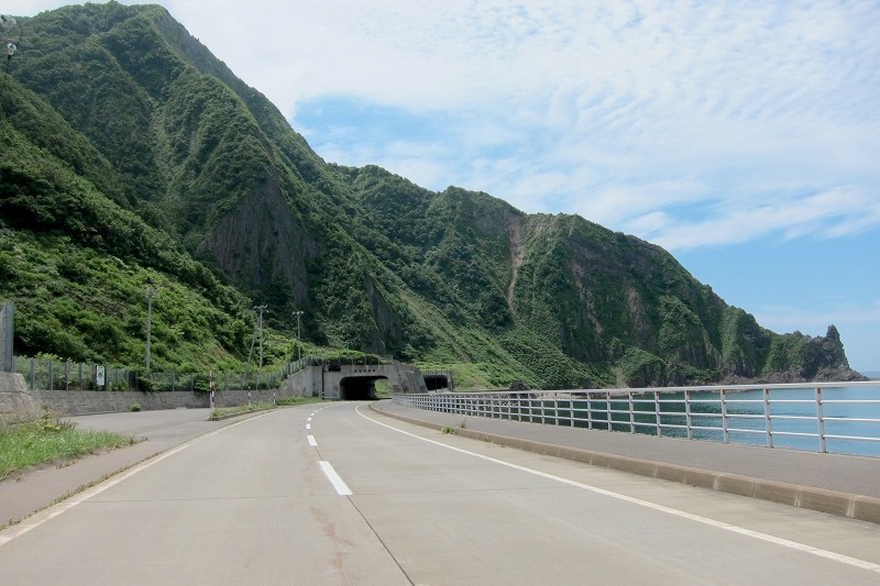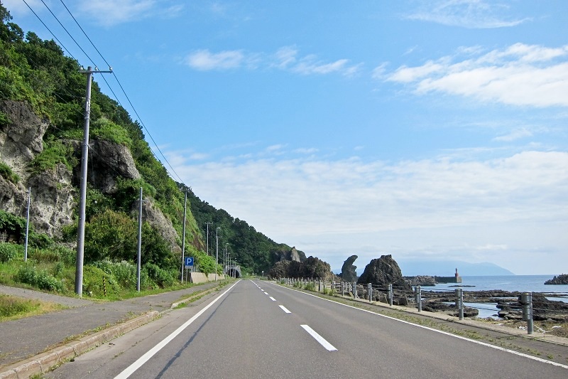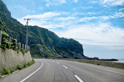 荒々しい海岸線が続く積丹への道。国道229号も改良が進んでほとんどが快走路だ。