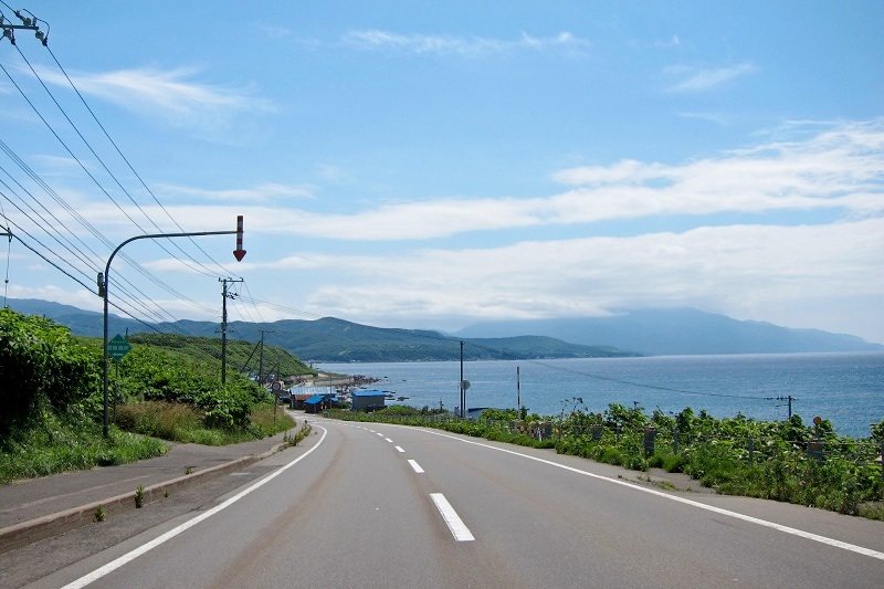 弁慶岬には寄らないけど、寿都の街へ登る道は結構気持ちいいストレート。