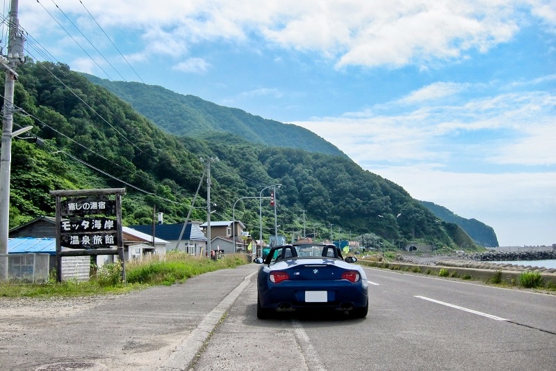 よく海岸線に道が作れましたねぇ。北海道の日本海側はスゴイところに道路を通していますね。)雄冬岬とかね。