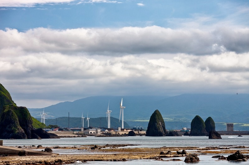 そうこの奇妙な風景が瀬棚の街です。風車と、三本杉と言われる奇岩の街です。