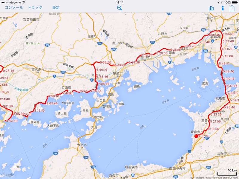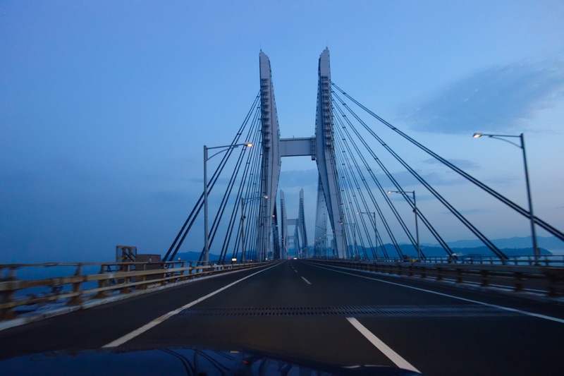 竹原、安芸津を越えて、安芸とびしま海道の安芸灘大橋の入り口を通り過ぎていきます。安芸とびしま海道もなかなか良いですよ。