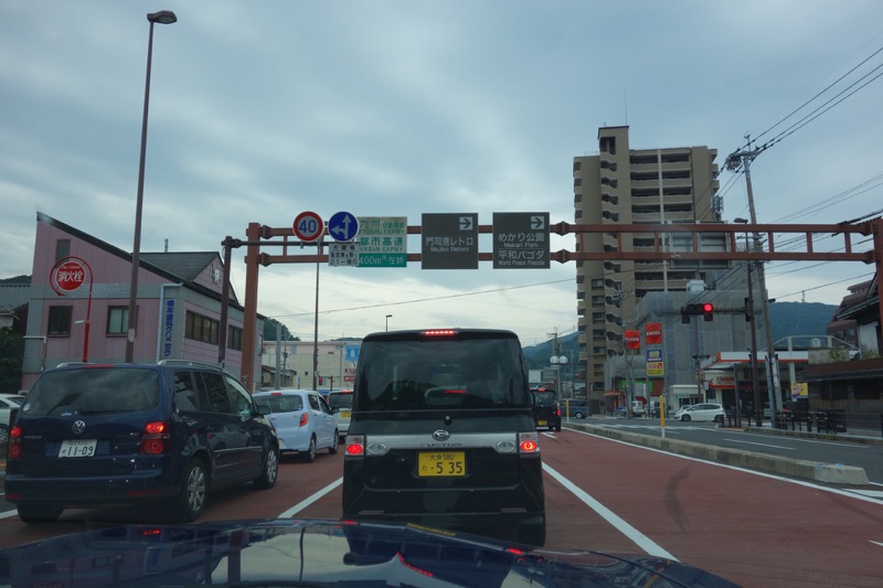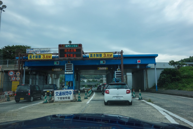 ぱらつく雨の中、一気に中国道を駆けて12:30。下関ICで降りて国道2号で関門トンネルに入っていきます。