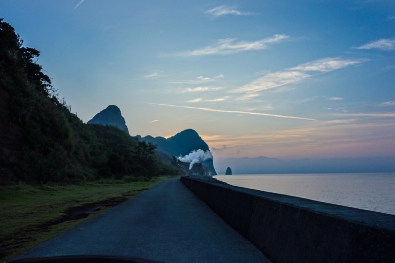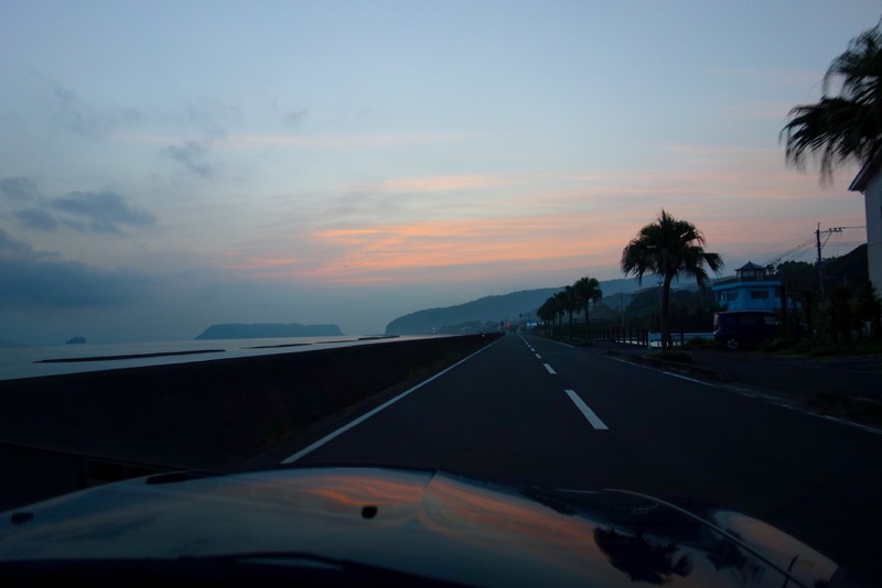 5時に鹿児島のホテルを出発。国道226号でまずは指宿を目指す。まだ暗い錦江湾を左に見ながら南下していく。