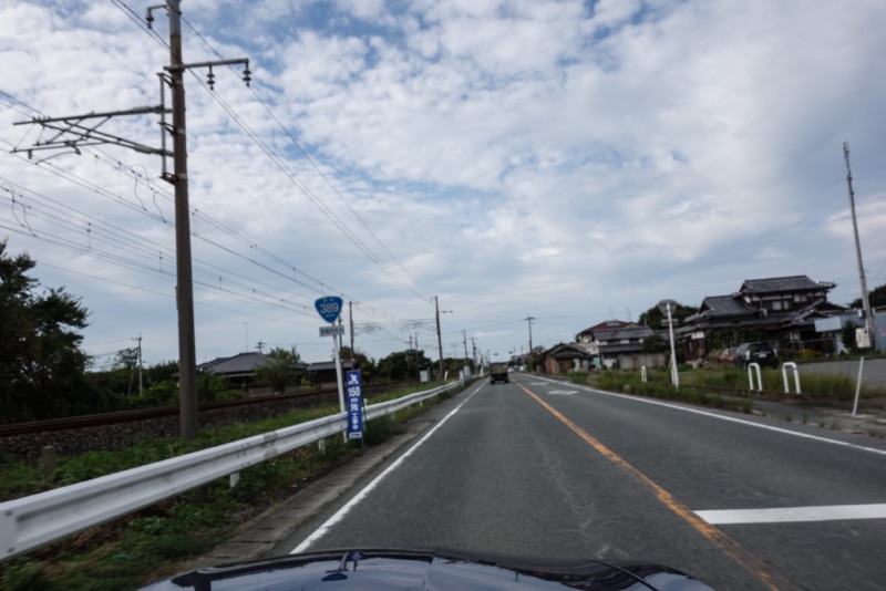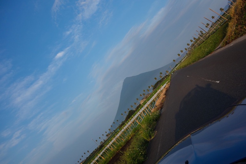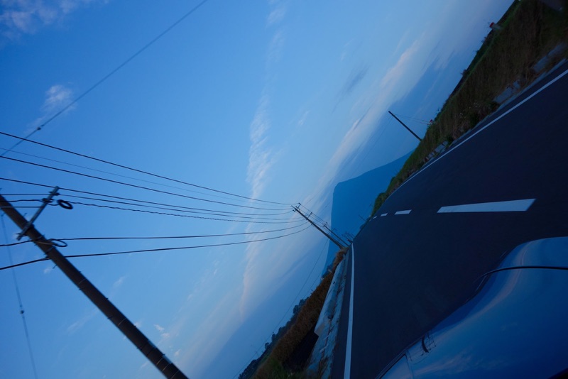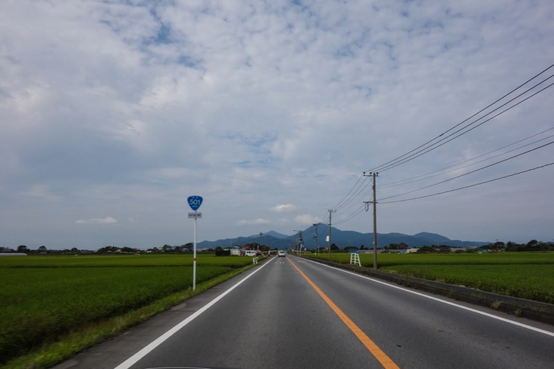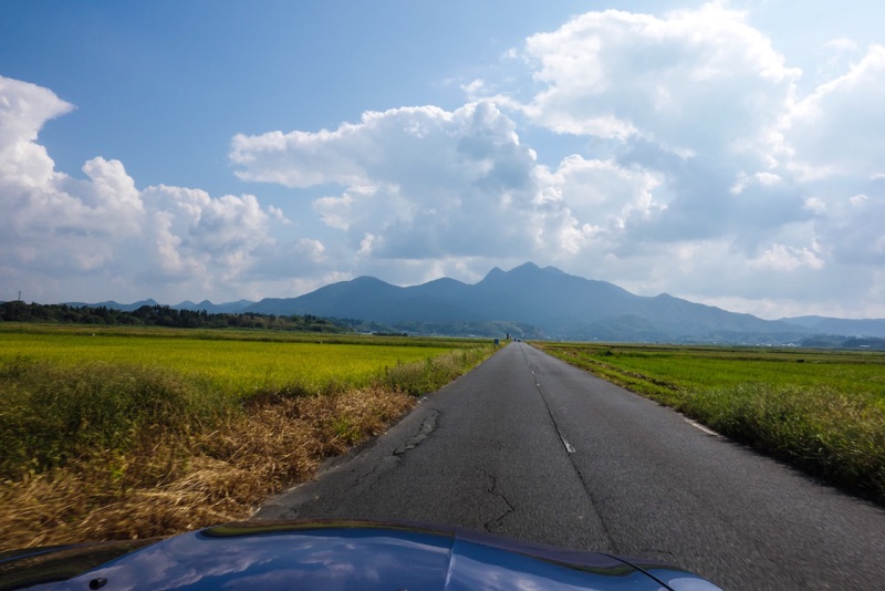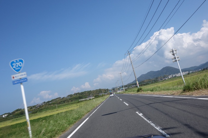 国道226号をひたすら駆け抜け、写真が全然ありません。吹上浜海浜公園を抜け、農道の中で撮った写真だけ残っていました。正面の金峰山にまっすぐ続く道が気持ちよくて好きな場所です。金峰山はクルマで山頂まで行ける風景が素晴らしい山らしいですが、行ってみたことはないのです。次回は是非行こうと思います。