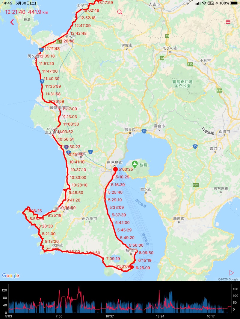 この日は川内原発付近の県道43号が通れず、国道3号をずっと走ったようです。
