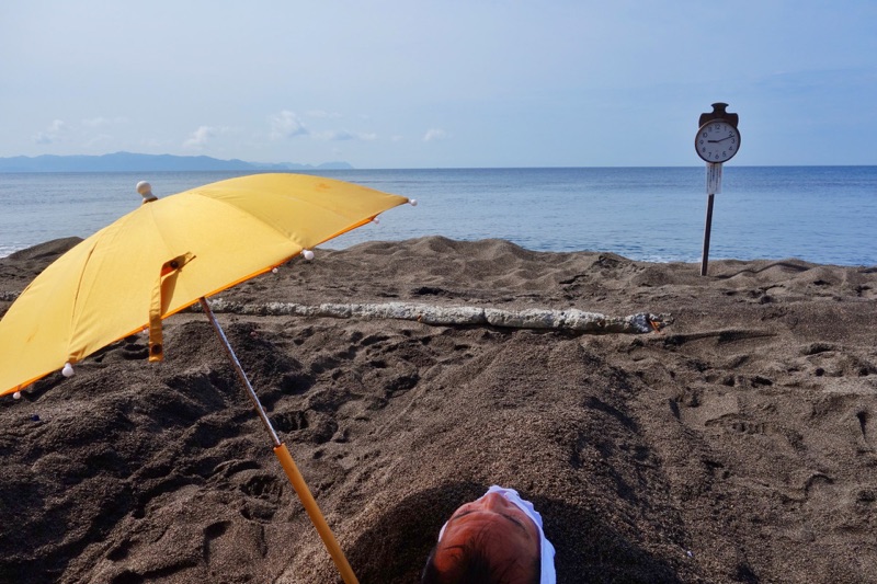 営業は当然この時間はしていませんが、砂むし温泉近くまで降りていきました。ここの砂むし温泉は開放感があり最高です。