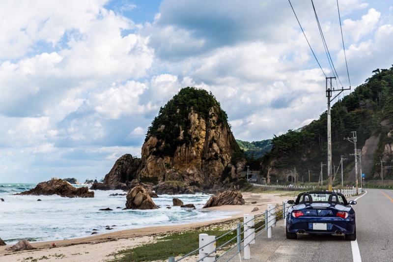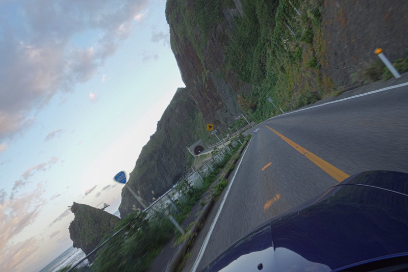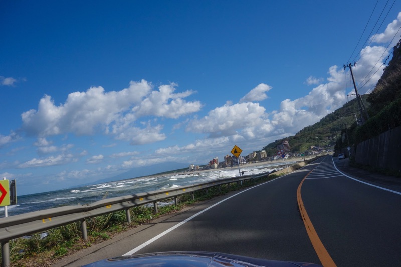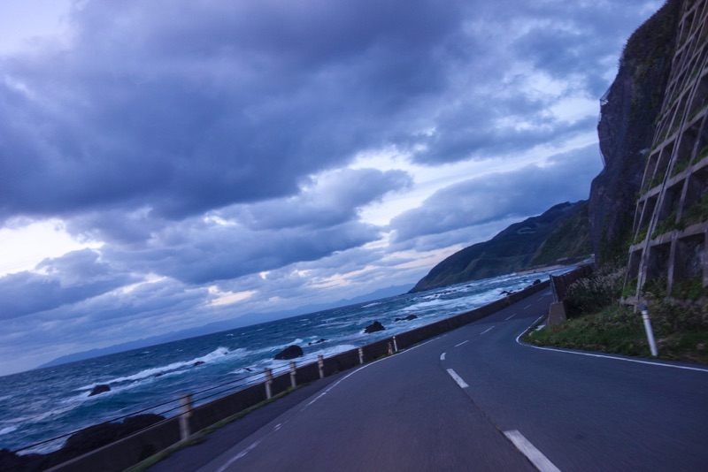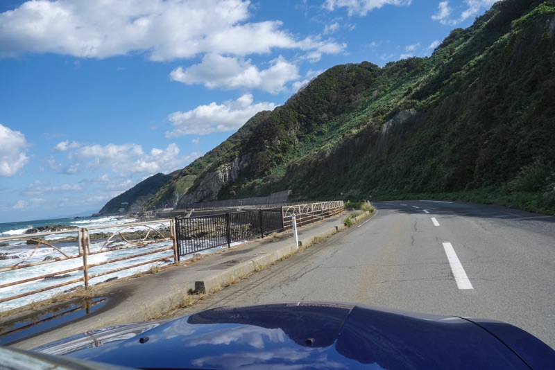千畳敷あたりを走行中。国道101号線も改良が進みいい道になっていますが昔はもっと雰囲気のある道でした。旧道を探してドライブするのもオススメです。