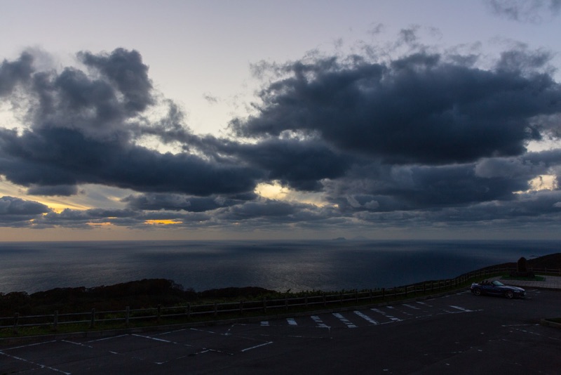 宿からそのまま国道352号を走り出す。大崎海岸付近を走行中。この日の夜明けは5時39分くらいだ。