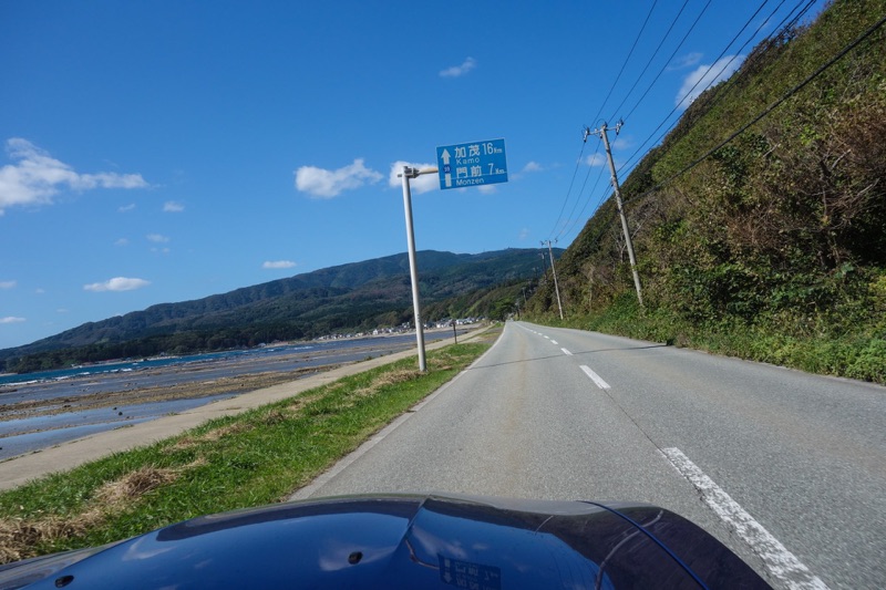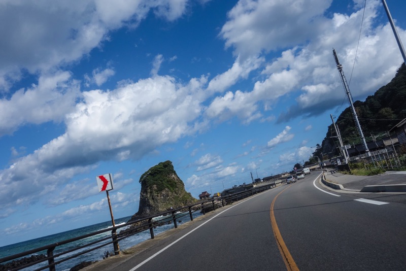 国道7号線に入りました。鼠ヶ関、道の駅あつみを越えて、暮坪の立岩というところ。