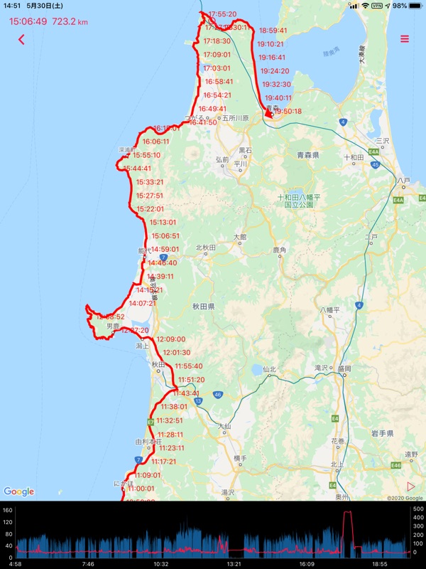 新潟、秋田の都市部をどう越えるかでどこまで行けるか決まるだろう。北海道に渡るフェリーも青森からか大間からか今日決めて予約する必要もあるな。