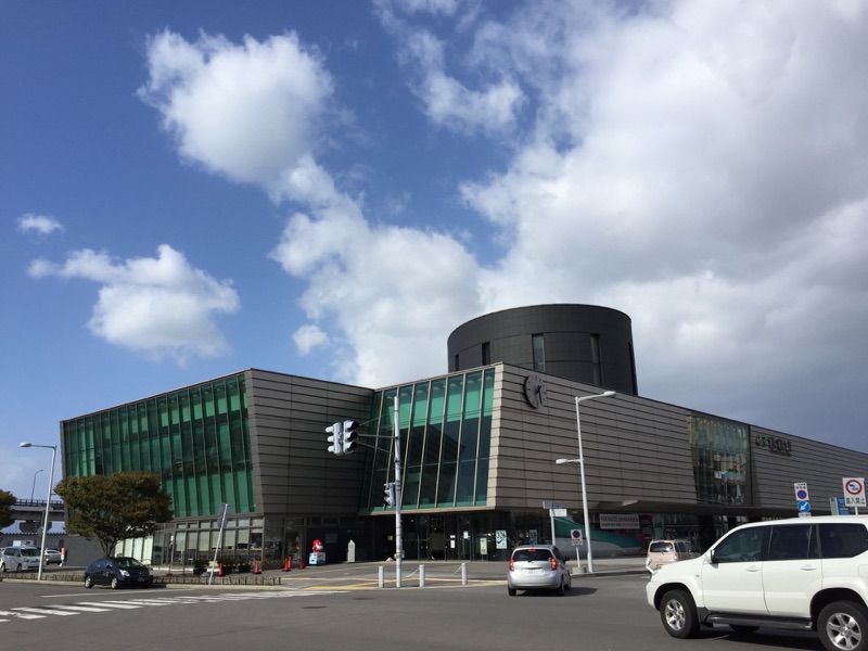 14日目、実はホテルで昼まで寝ていました。昨晩から発達した低気圧が北海道に来て暴風雨でした。この日は利尻空港で43.7メートルと看板が飛ぶくらいの暴風だったようです。クルマもタワーパーキングに入れられて良かったです。ホテルの駐車場にカンバンが吹っ飛んできていました。午前中までは函館でも影響がありましたがお昼の13時ではこのように晴れ間が出てきました。