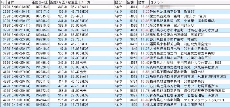 これがここまでの燃費です。合計14日で21回給油しています。給油は結構早めにする(田舎で痛い目に会うことがあるので)ので多くなってます。Z4Mの燃費はちょっとわかわからんところがあるのですが、道が混んでたところが燃費悪いかと言うとそうでもないのですね。全体としては12km/L近く行ってることもあるのでまぁ超優秀ですね。峠で回して燃費が7km/Lくらいまで落ち込んでもその後のリカバリは結構自信があります。