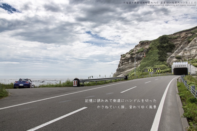 この道道1038号も海沿いの好きな道です。今でこそ堤防や波消しブロックが出来ていますが、トンネルが二車線になった2008年くらいまで路肩まで土でした。今でも波かぶる道ですが。昔はもっとすごかったですσ(^_^;)