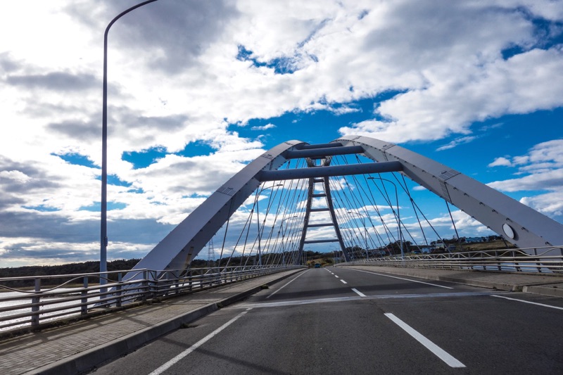 さて北へ向かいましょう。根室半島北岸を道道35号で走って、国道44号に入ります。温根沼(オンネトー)大橋を走行中。