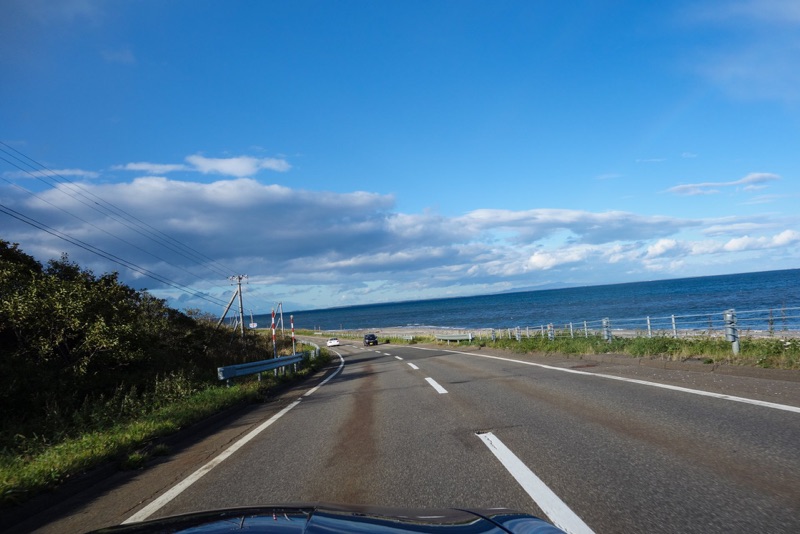 16日目、今日の前半は北太平洋シーサイドラインを走り本土最東端を目指す旅。帯広の朝は5.9度と寒かった。昨日はホテルの駐車場は満車で(駐車場が無いので部屋が空いていたそうだ)駅地下の公共駐車場にクルマを止めたため出発は駐車場の営業が始まる6時となってしまった。天気は上々。では国道336号の湧洞湖入り口まで行ってスタートです。