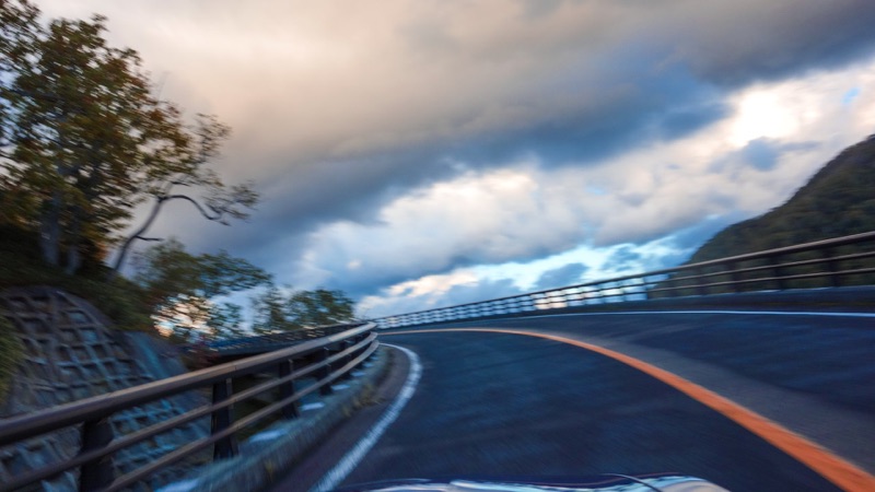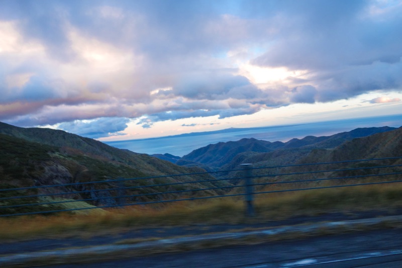 知床横断道路を駆け上がります。対岸ウトロの日没は16時59分です。間に合うかな?