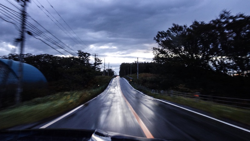 知床半島北岸は雨が降ったりやんだりでした。雨の中を斜里に向かっています。