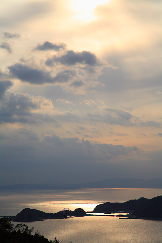 樺島大橋のシルエットが浮かび上がる。