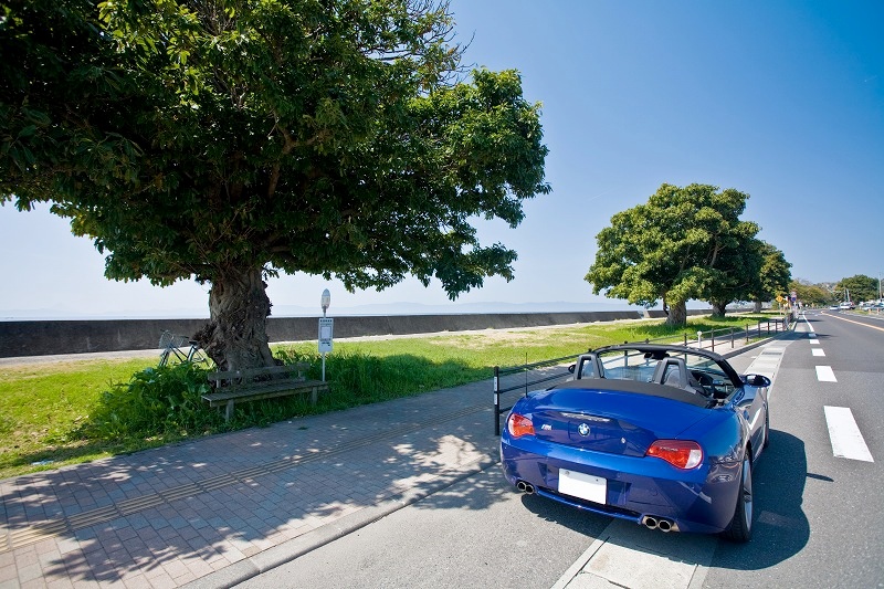 錦江湾沿いの国道220号を走ってしばしの休憩、宮脇というバスの停留所にZ4Mを停めた。
