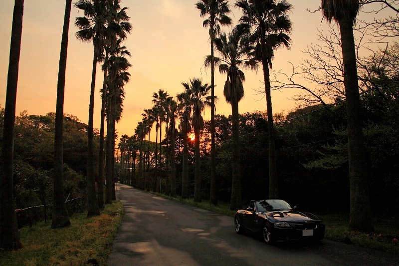 伊豆海洋公園の椰子並木を駆け抜ける。