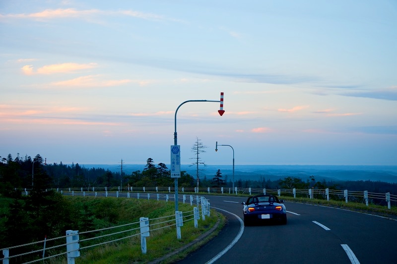 ゆうぐれ、ほんのり朱に染まった雲、だれもいない峠