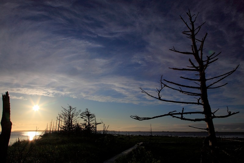 野付半島のトドワラは、砂嘴上のトドマツ林が海水の浸食により枯死したところ