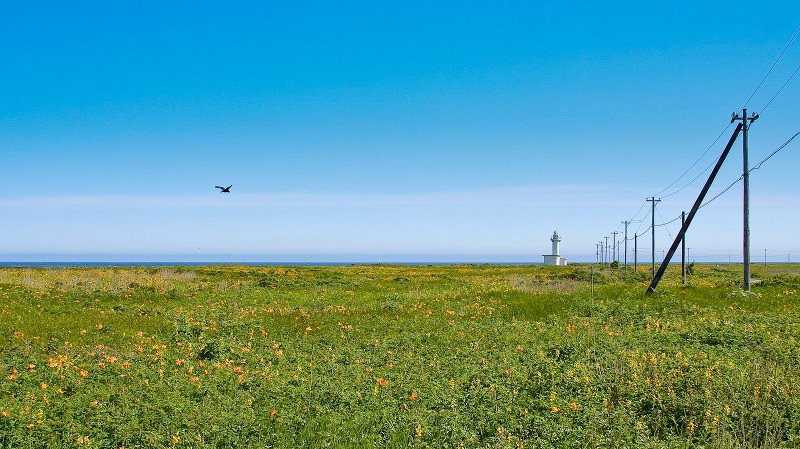 エゾカンゾウが咲き乱れる砂嘴の果てにこの灯台はあった。