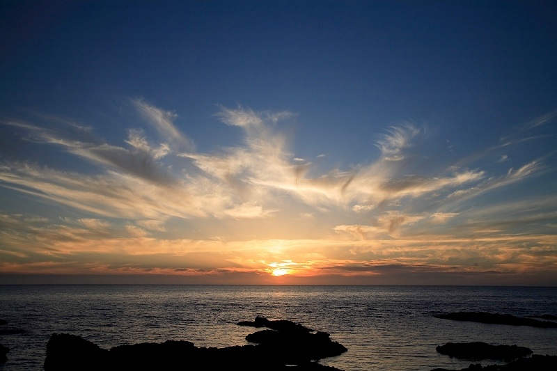 瀬棚海道あたりで太陽は水平線にあった厚い雲に沈んでいった。